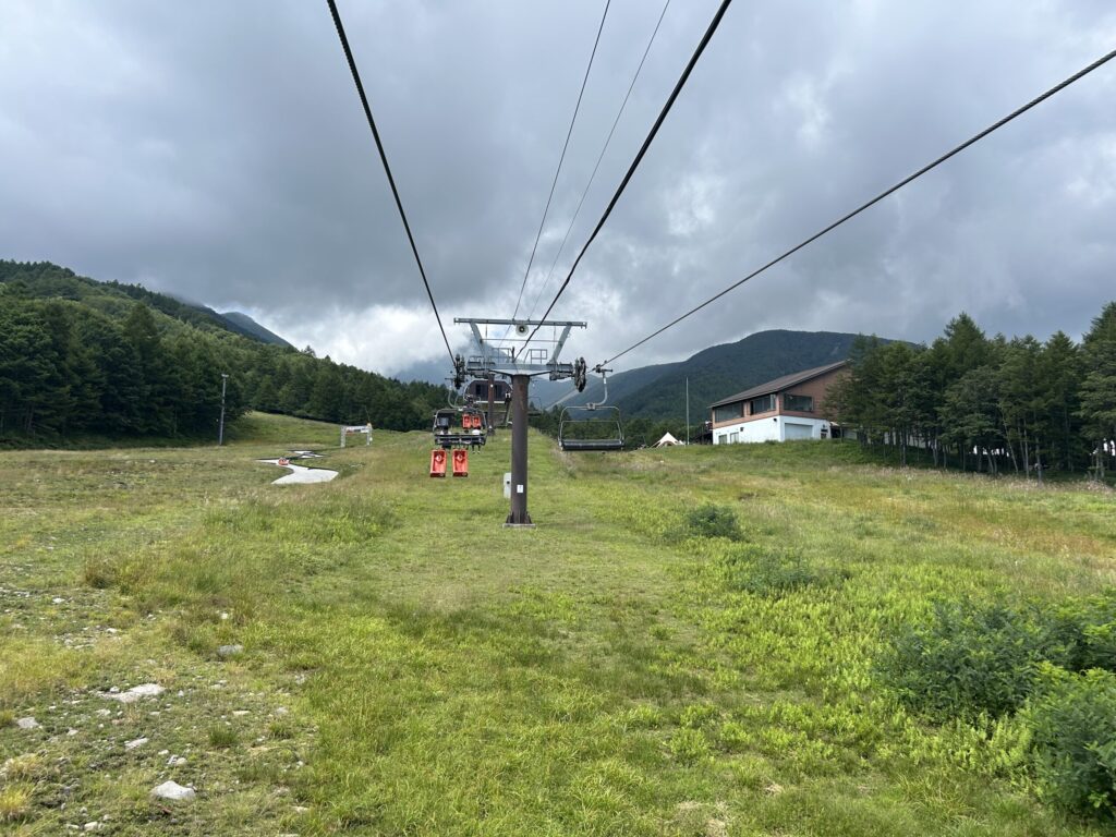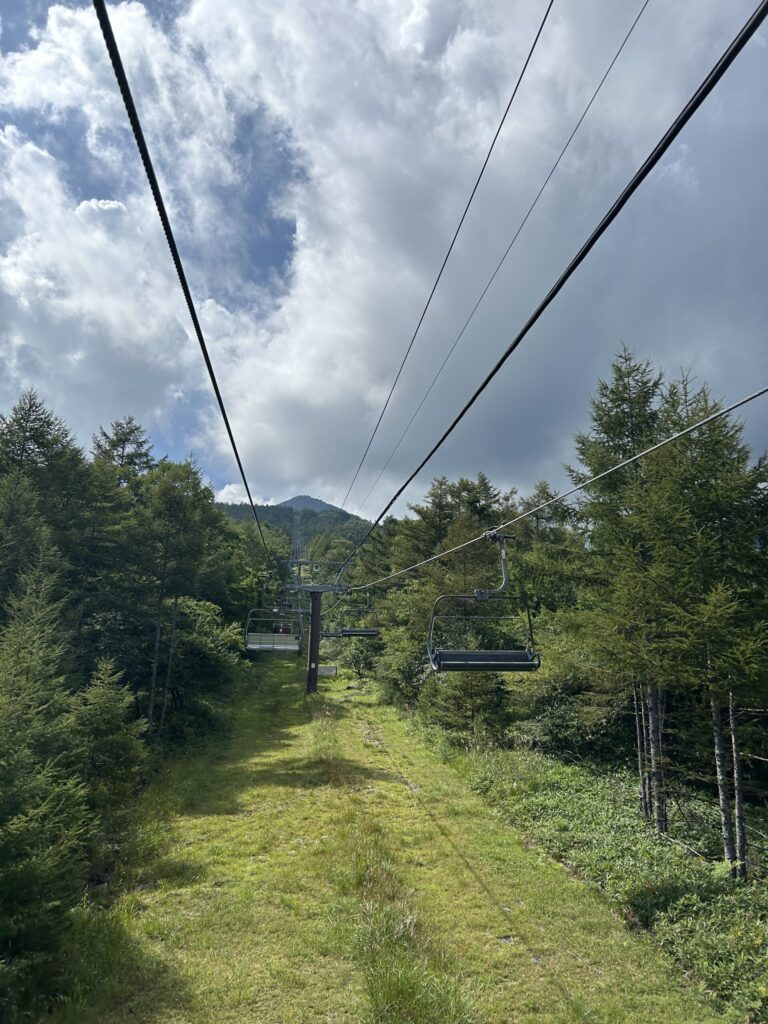 リフトに10分ほど揺られると、山頂に到着!山の上なので雲がないと直射日光が当たりジリジリとした暑さを感じますが、雲が出て少し日が翳ると、とても涼しく感じられました。